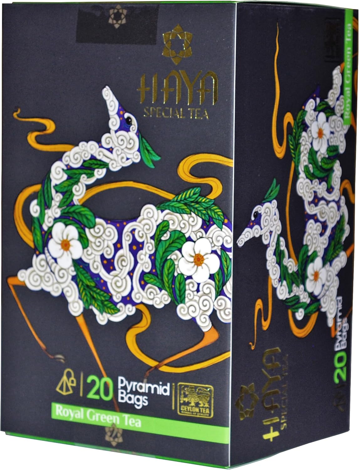 Haya Royal Green Tea – 20 Pyramid Tea Bags Individually Wrapped for Freshness & Aroma