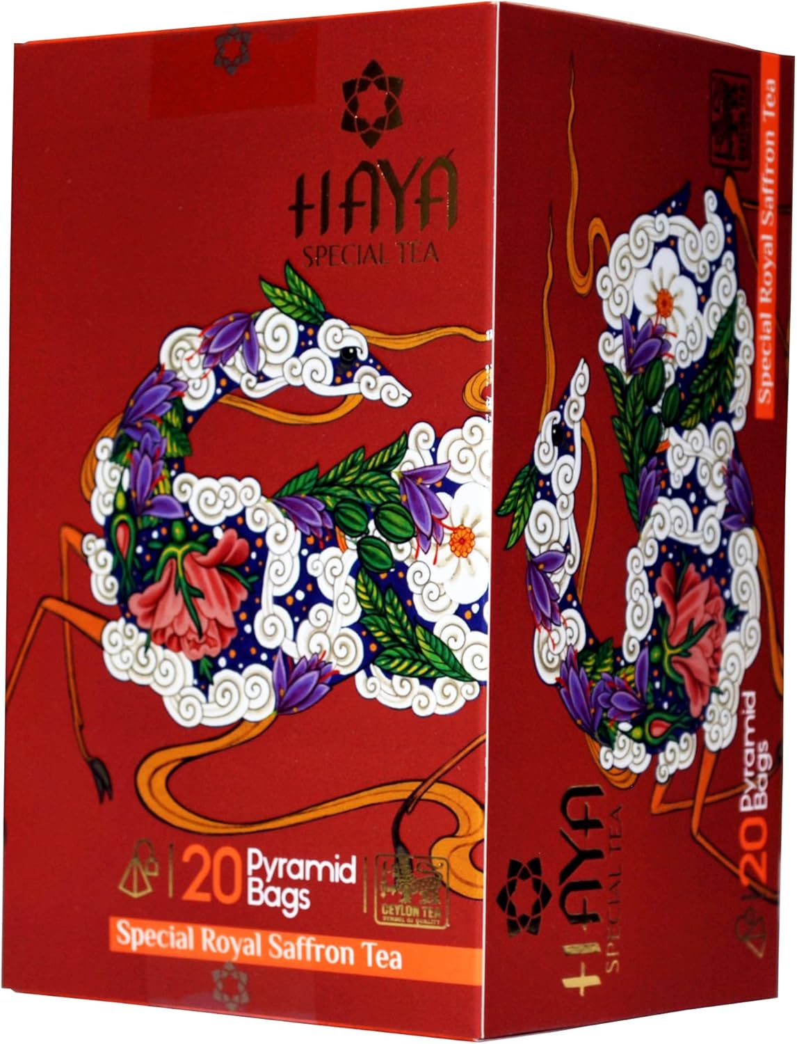 Haya Special Royal Tea with Saffron, Cardamom & Rose – 20 Pyramid Tea Bags Individually Wrapped for Fresh Aroma & Flavor
